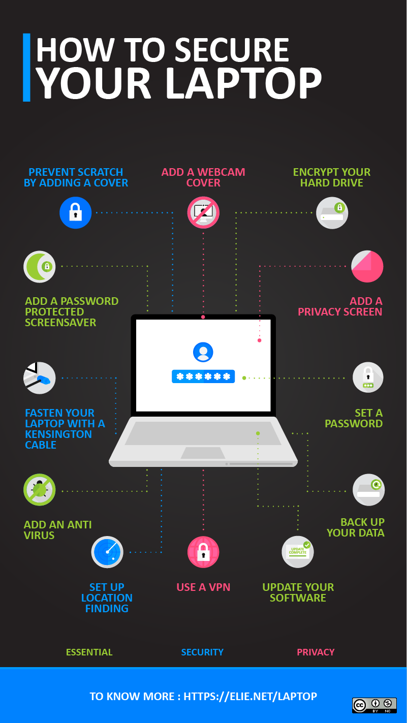 If you find this advice useful, don’t forget to share this post or the infographic on your favorite social networks so your friends and colleagues can also better protect their laptops.